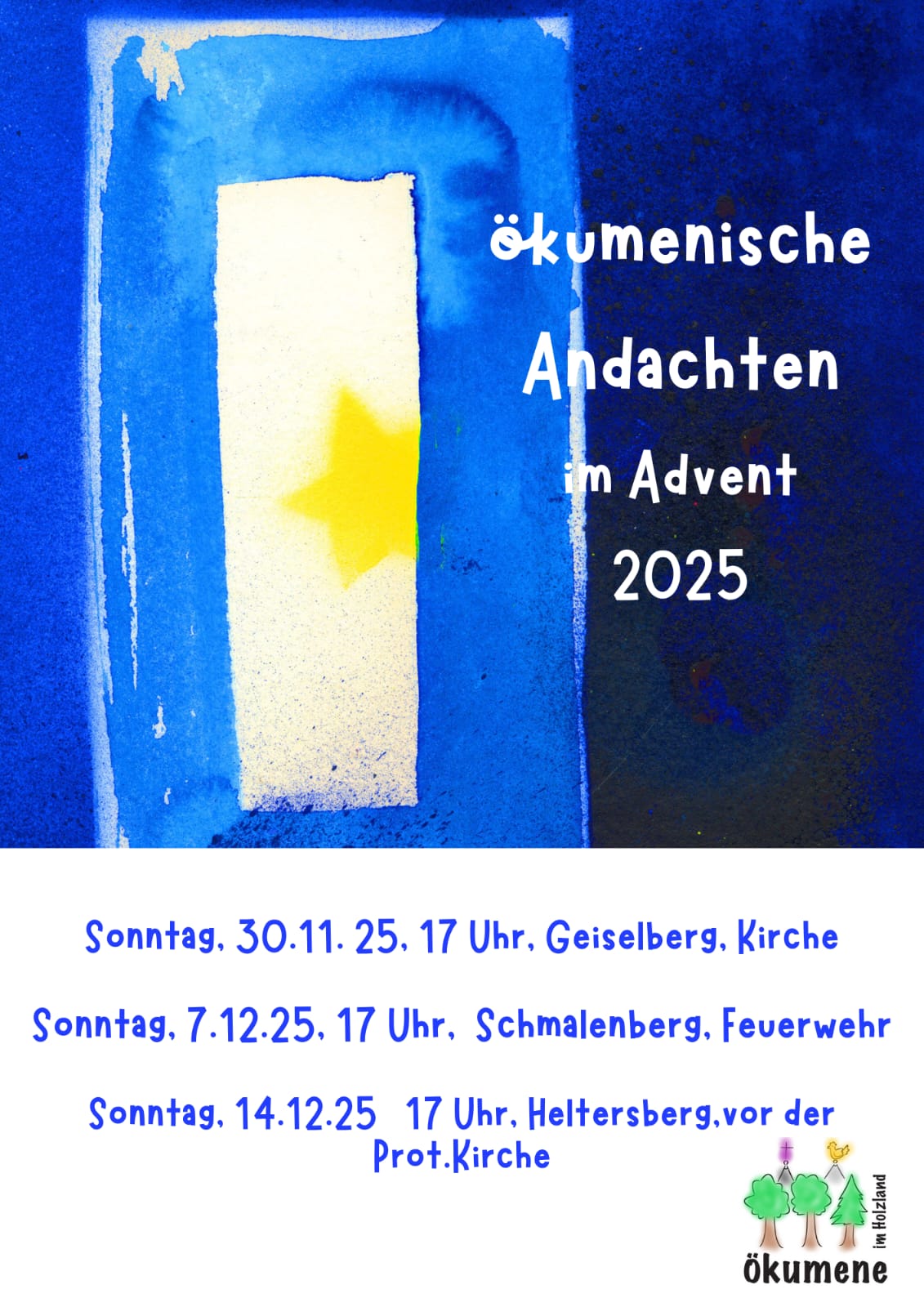 Wir laden ein zu 3 ökumenischen Adventsandachten: 3 Orte, 3 Liturgien-Teams und ein Konzept:
